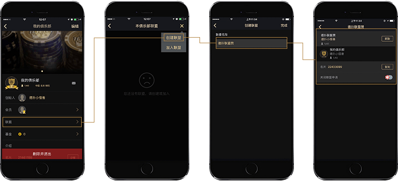 · 每个俱乐部群主只可创建1个联盟,并加入2个联盟;一个联盟允许3个俱乐部同时加入。